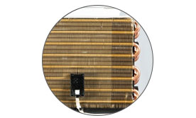 內雙層全銅冷凝器,8根內螺紋新型銅管,具備防污自清潔能力鈦金親水兩器100%純銅銅管。
